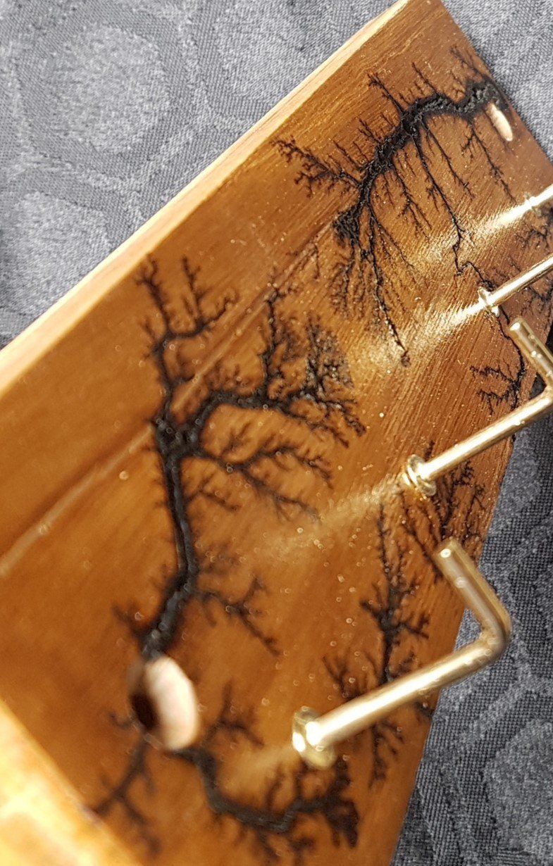 This is a beautiful piece of reclaimed oak flooring. I burned the fractal lightning effect using a 2000 volt transformer, this is a seriously dangerous process but the effect as you can see are stunning. Every fractal burn is totally unique.
